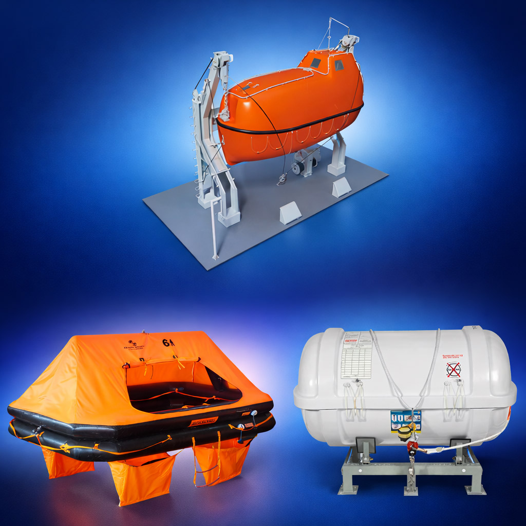 The Life Rafts and Lifeboats for the Sea Going Vessels.